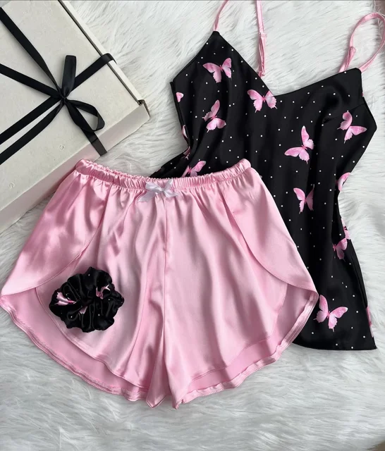 ست تاپ و شورتک ساتن طرح پروانه، انتخابی زیبا و راحت برای استفاده روزمره و منزل است. این ست با پارچه ساتن نرم و طرح پروانه جذاب، ظاهری شیک و دلنشین دارد. مناسب برای احساس راحتی و زیبایی در هر لحظه از روز.